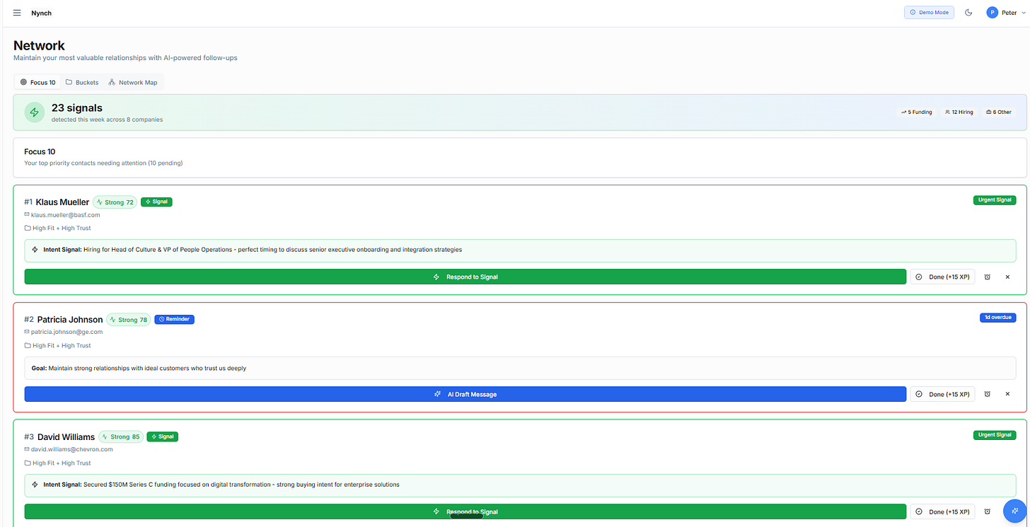 1. Decision paralysis. You have a network. You just can’t see it clearly. Everyone’s in one undifferentiated pile former clients mixed with random LinkedIn accepts mixed with people you genuinely should be talking to. So you scroll, feel overwhelmed, and do nothing.