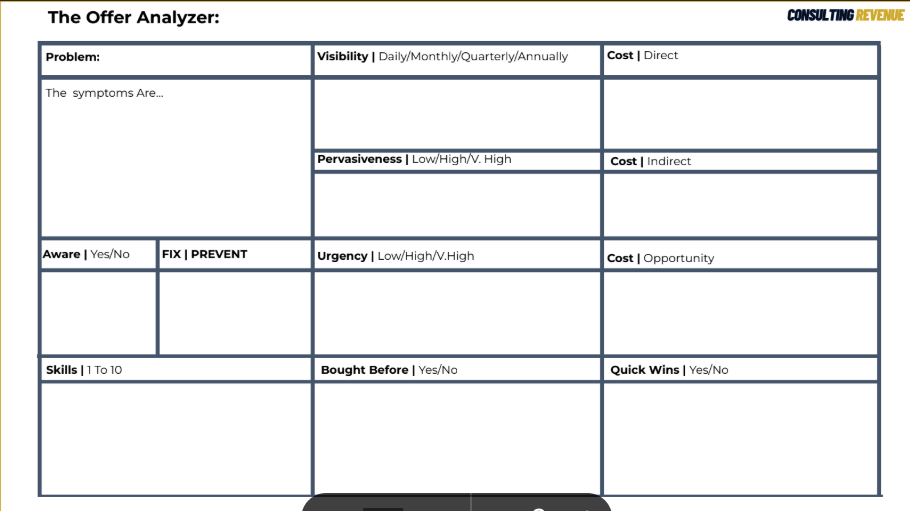 To help consultants create compelling offers, I've developed the Offer Analyzer framework. Here's how it works: